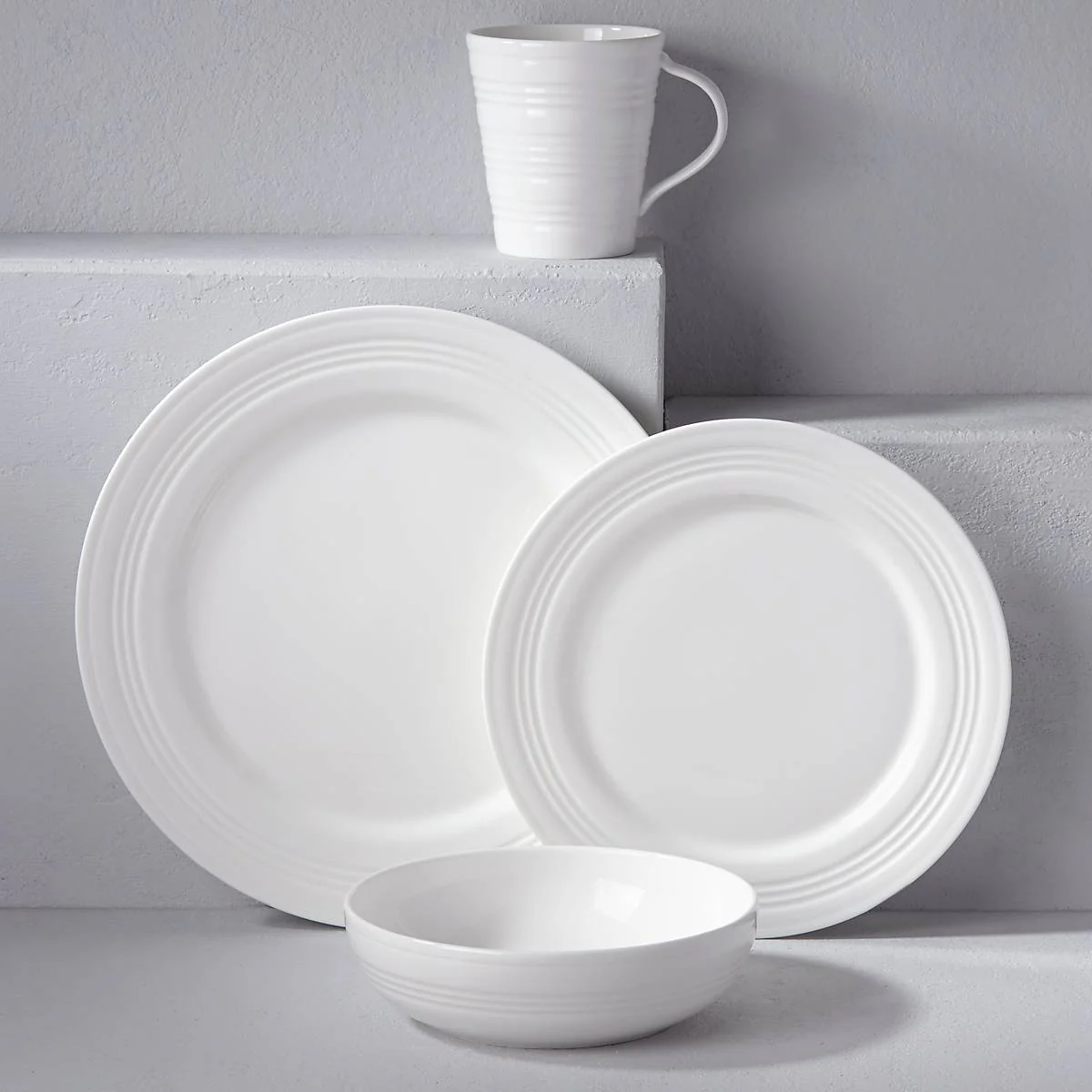 This dishwasher and microwave-safe set suits any occasion and complements a variety of dinnerware styles. The Tin Can Alley 4-Piece Dinnerware Set adopts the tin can's emblematic corrugated rings on durable white porcelain for a simple, aesthetic design.
